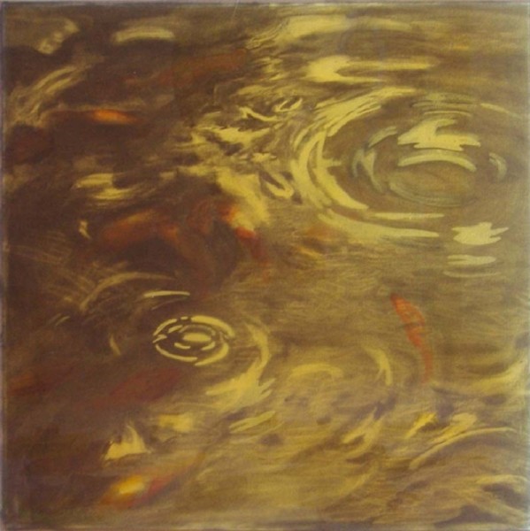 Uhel, křída, sprej pod rybniční fólií / Charcoal chalk spray under the fishpond board / 56 x 56 cm